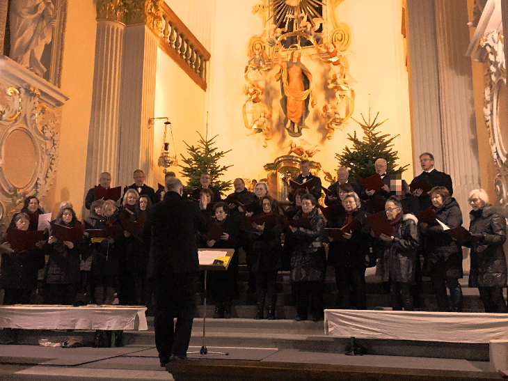 Beim traditionellen Adventssingen in der Wallfahrtskirche am vierten Adventssonntag trat auch der Kirchenchor Freystadt auf. Unter der Leitung von Chorleiter Dominik Lehmeier sang der Chor "Übers Gebirg Maria geht" von Johannes Eccard, "Laudate Dominum" von Giuseppe Ottavio Pitoni und "God bless us ereryone" nach einem Arrangement von Dominik Lehmeier.