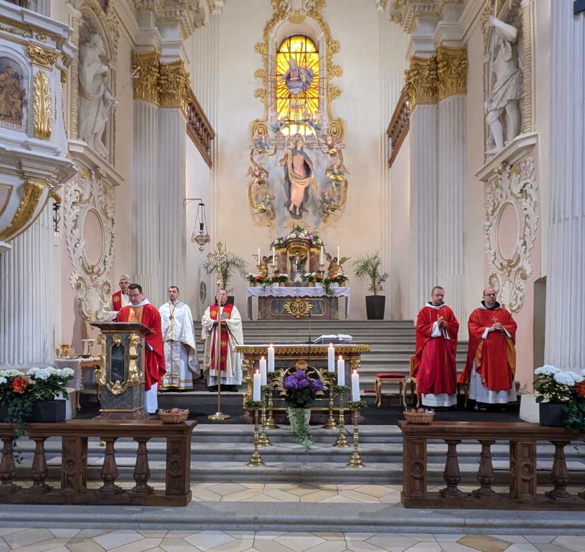 P. Achilles feierte am 30.Juni 2024, Peter und Paul(29.Juni) in unserer Wallfahrtskirche seine Nachprimiz. Der Tag begann mit einem festlichen Gottesdienst der vom Kirchenchor musikalisch umrahmt wurde. P. Achilles wurde von mehreren Patres und vielen Ministranten feierlich zum Altar begleitet. Er wurde von Pfarrer P. Bartimäus herzlich begrüßt und zur Priesterweihe gratuliert.