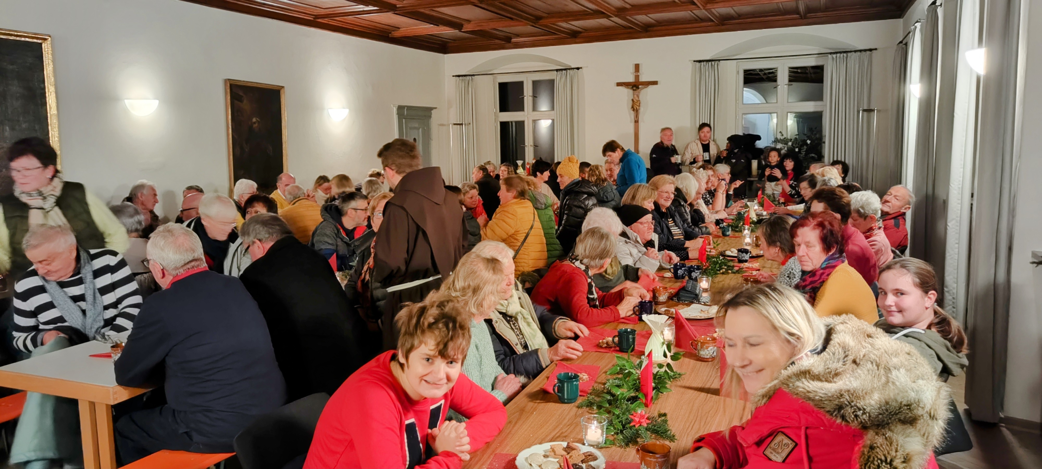 Im Anschluß ging P. Achilles mit seinen Gästen in den Klostersaal zum gemeinsamen Mittagessen, Kaffee und Kuchen.