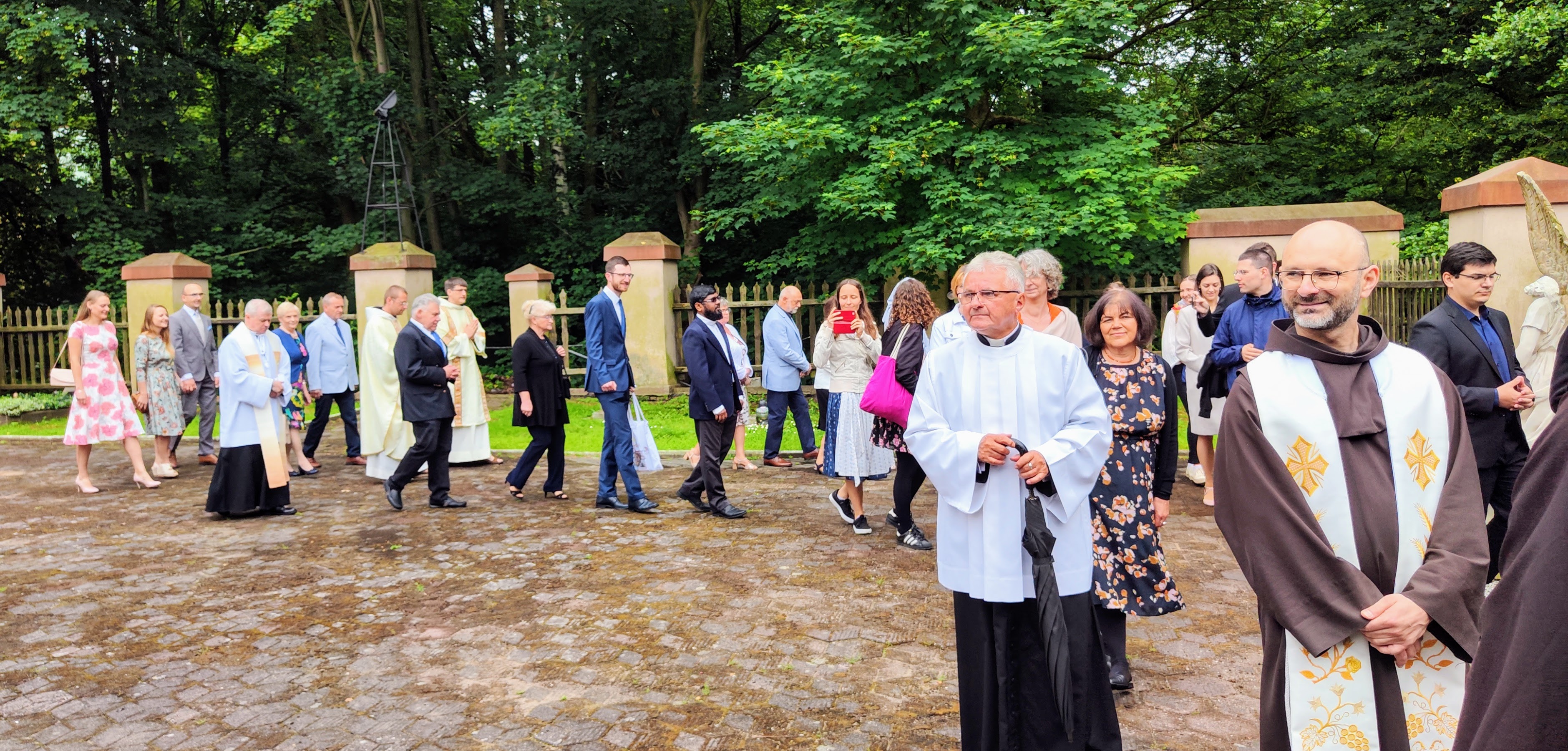 Am 24. September 2024 fand um 18.00 Uhr in der Wallfahrtskirche in Freystadt ein feierlicher Gottesdienst statt, der anlässlich des 25-jährigen Bestehens des Seelsorgedienstes der Franziskaner-Patres aus der polnischen Provinz in Kattowitz gefeiert wurde. P. Provinzial Witosław Sztyk OFM aus Kattowitz war anwesend, ebenso wie sein Sekretär P. Mirosław Góra OFM. Unter den eingeladenen Gästen befanden sich auch Pfarrer Fran-Josef Gerner aus Hilpoltstein, Archimandrit Andreas Thiermeyer und der evangelische Pfarrer Alexander Proksch. Zahlreiche Mitbrüder aus Klöstern in Deutschland, Österreich und Italien nahmen teil.