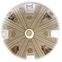 Because of the increasing number of pilgrims, the stone church which had been consecrated in 1670, became too small. Unfortunately, the church could not be expanded due to weak base and wet ground underneath the church. That is why baron Ferdinand Lorenz Graf von Tilly, who owned Freystadt, wanted to build a new magnificent temple. He hired Giovanni Antonio Viscardi, a well-known Italian architect. The corner stone was laid down August 28, 1700. They used the very same stones that remained from the ruined church and Franciscan friary on the Möningerberg hill. In 1708 George Asam and his sons Cosmo Damian and Egidius Quirinius signed a contract for painting frescos inside the baroque church. Today one can see 33 frescoes (out of 50) that were painted. Because most of them were almost destroyed, George Lang from Dening repainted them between 1877-79. Later they hired Pietro Francesco Appiani, an Italian stucco-worker. He made the beautiful ambo enriched by stucco crowned with a pelican – the symbol of love and sacrifice of Christ. He made also several frescos frames, magnificent stuccos, mainly plant-shaped (acanthi, lily, rose also oak and palm leaves), figure-shaped (caryatides1 and putties2), vases full of fruit, shells, and cartouches3 as well; especially interesting are garlands of flowers and arcades. September 3, 1710, bishop Johann Adam Nieberlein of Eichstätt consecrated the temple, at the presence of thousands of the faithful who were astounded by the beauty of the new “Italian” baroque church.